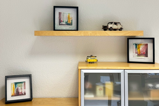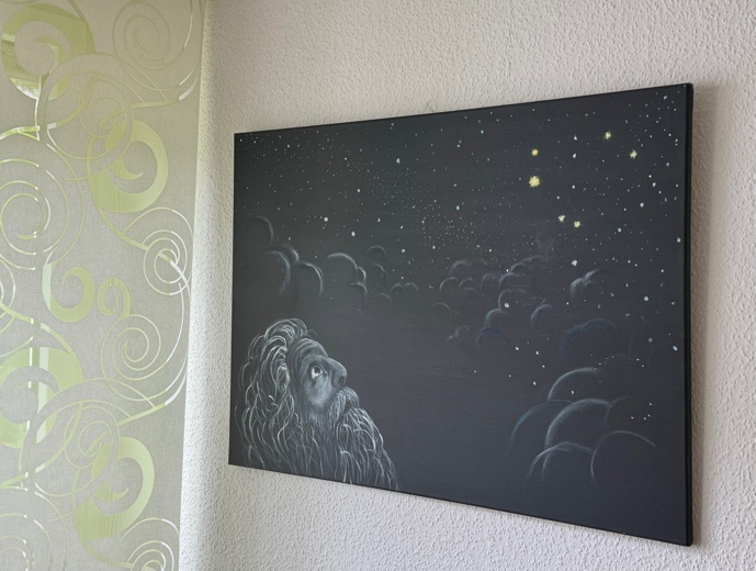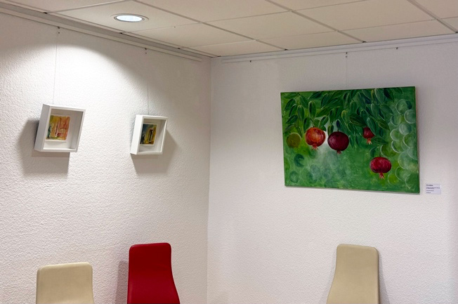 Und zwei Bilder hat meine Ärztin für sich persönlich gekauft und in ihrem Sprechzimmer aufgehängt. Damit hat sie mir eine große Freude bereitet und Wertschätzung meiner Arbeit ausgedrückt. Außerdem unterstützt sie so meine Arbeit und gibt mir die Möglichkeit, weitere Bilder zu malen.